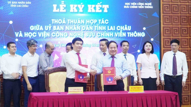 Chiều 6/6, tỉnh Lai Châu đã ký kết thỏa thuận hợp tác với Học viện Công nghệ Bưu chính Viễn thông về đẩy mạnh công tác nghiên cứu, ứng dụng khoa học công nghệ, đổi mới sáng tạo và chuyển đổi số; đồng thời đào tạo, bồi dưỡng nâng cao chất lượng nguồn nhân lực cho tỉnh Lai Châu giai đoạn 2025-2030.