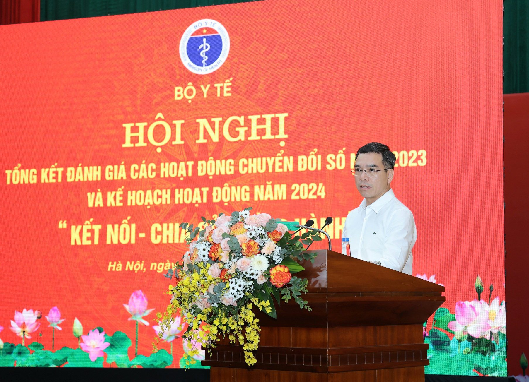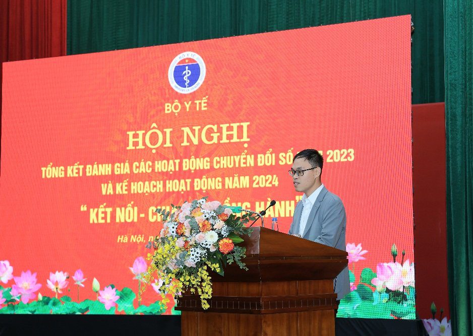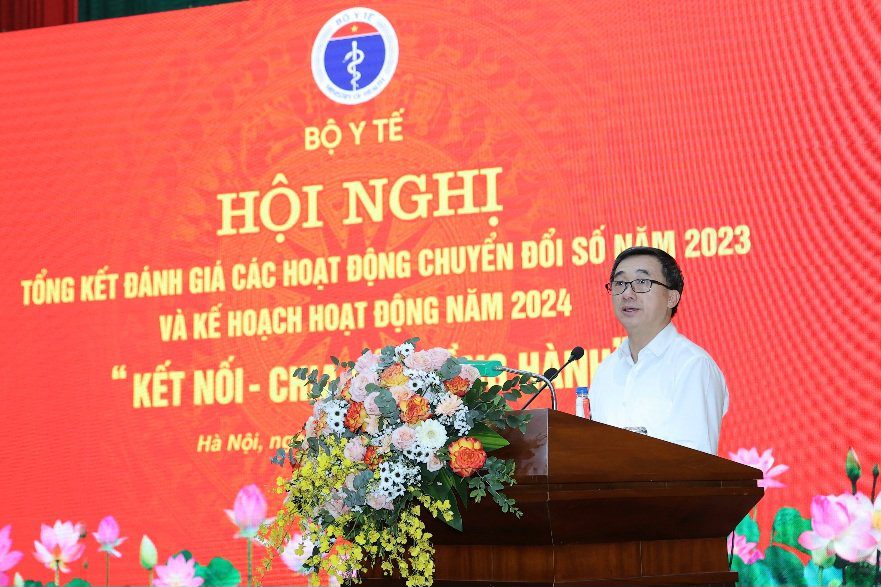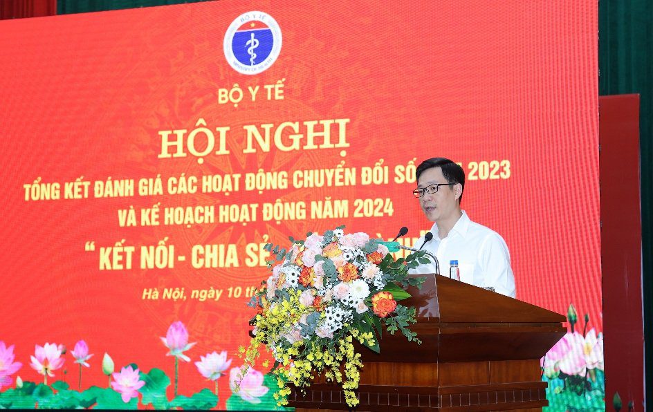 Ngày 10/4/2024, Bộ Y tế tổ chức “Hội nghị tổng kết, đánh giá các hoạt động chuyển đổi số năm 2023 và Kế hoạch hoạt động năm 2024” với sự tham gia của một số Bộ, Ban ngành Trung ương và địa phương tại Hà Nội; Lãnh đạo và cán bộ phụ trách công nghệ thông tin các đơn vị thuộc trực thuộc Bộ Y tế; Y tế các Bộ, ngành, các Đại sứ quán, các Hiệp hội, các Bệnh viện và Doanh nghiệp…Lãnh đạo Bộ Y tế chủ trì hội nghị. Hội nghị được kết nối với 1.200 điểm cầu ở 63 tỉnh/ thành phố.