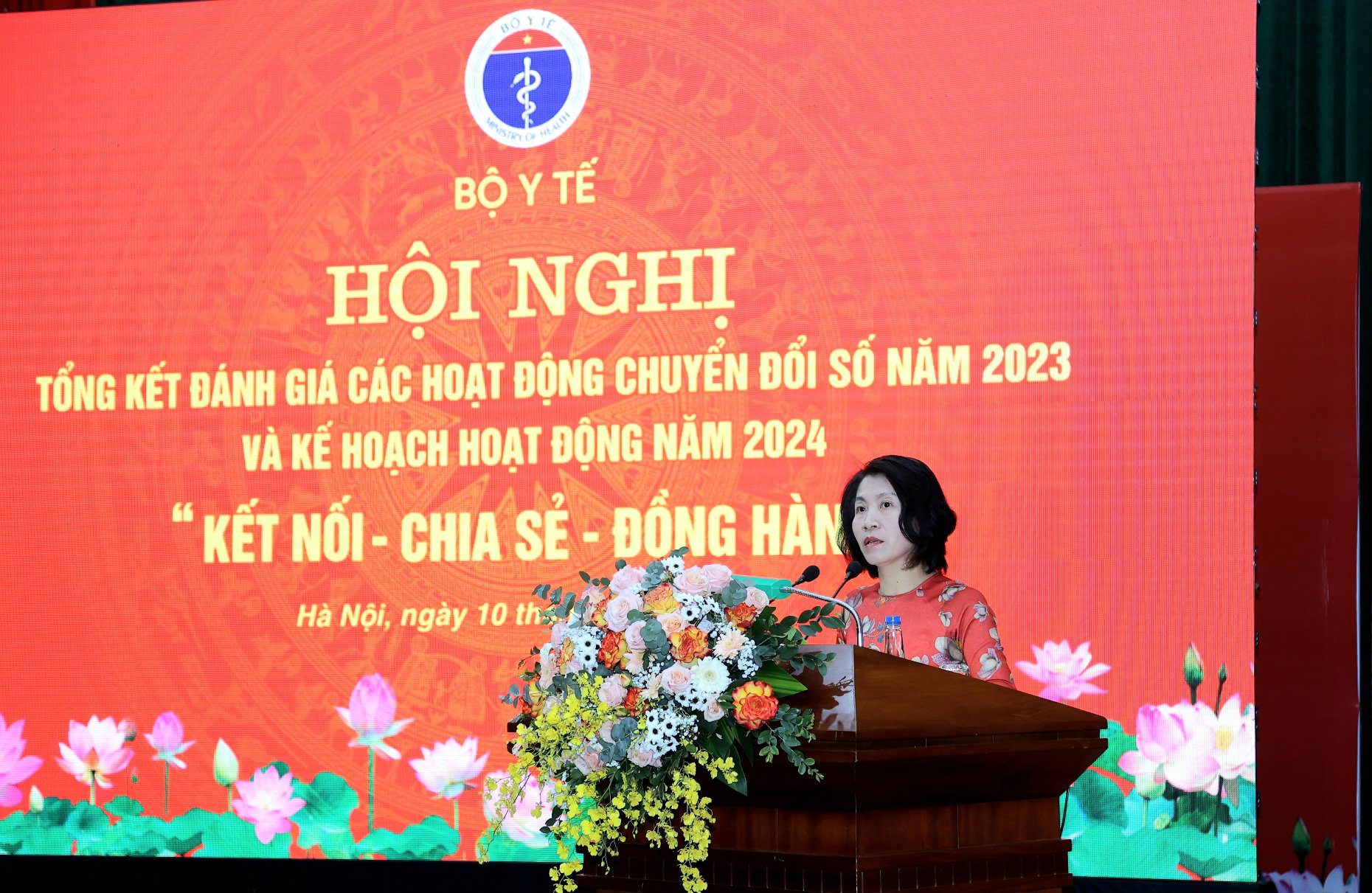 Hội nghị tổng kết, đánh giá các hoạt động chuyển đổi số năm 2023 và Kế hoạch hoạt động năm 2024 với thông điệp: “Kết nối- Chia sẻ- Đồng hành” lần này nhằm tổng kết, đánh giá các hoạt động chuyển đổi số y tế năm 2023, cùng nhau thảo luận, đúc rút ra bài học kinh nghiệm, khắc phục các khó khăn, tồn tại để tập trung triển khai những nhiệm vụ có trọng tâm, trọng điểm năm 2024, đồng thời Bộ Y tế sẽ báo cáo Chính phủ, Thủ tướng Chính phủ đưa vào chương trình công tác năm 2024 đối với Đề án tổng thể phát triển hạ tầng và ứng dụng công nghệ thông tin phục vụ chuyển đổi số y tế đến năm 2030 gắn chặt chẽ với triển khai Đề án 06 của Chính phủ.